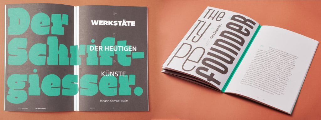RO – That’s true. We added the English translation to the original text chosen for the specimen starting from Cast it #3. Dan Reynolds was in charge of the foreword. He’s an American researcher and teacher based in Germany and he specialises in the history of German typography. He suggested Halle’s text and its translation, he was particularly interested in translating it into English, because nobody had done that before. Besides being a great researcher, Dan is also a very good translator of German, a language he knows well.