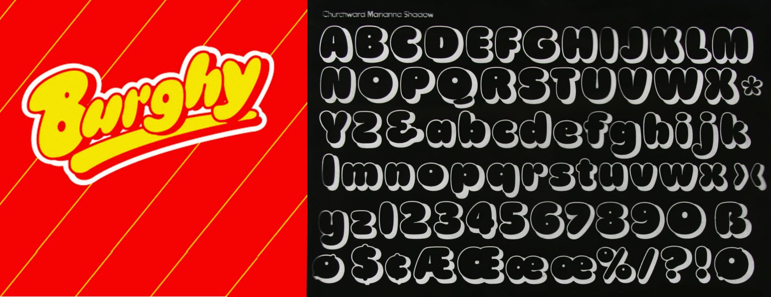 Designed by Fabrizio Falcone and Alex Bossi, Burghi is a variable display font. Inspiration came from the graphic styles of the early fast-food joints and especially the logo (perhaps influenced by Joseph Churchward’s Marianna typeface) of the first Italian US-style fast-food chain.