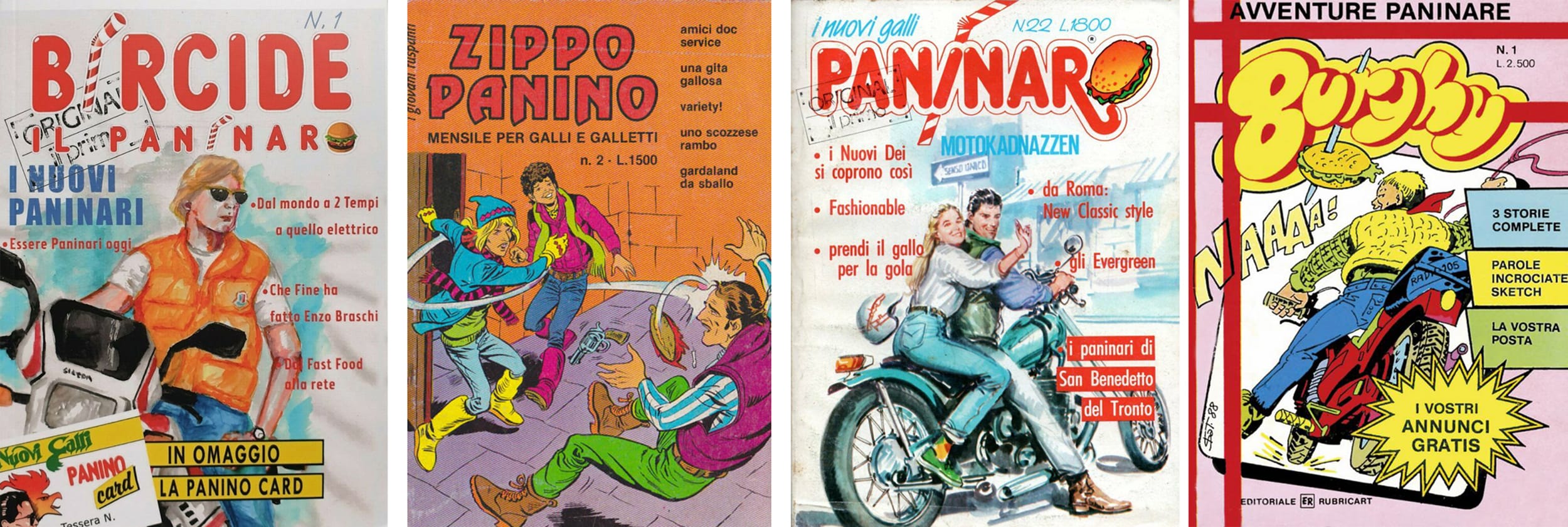 From 1984 to 1988 the launch and growing popularity of Drive in (a new comical show on one of Berlusconi’s tv channels) amplified this subculture with sketches by Paninaro, a character played by the comedian Enzo Braschi. The show helped spread the ‘paninari fashion’, codifying stylistic features and status symbols craved by youngsters from all over Italy and Italian Switzerland. It was so successful that specialised comics also cropped up: Il Paninaro, Wild Boys, Zippo Panino, Il Cucador as well as Preppy and Sfitty, their female versions.
