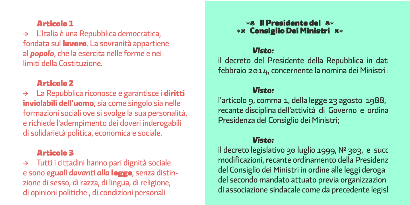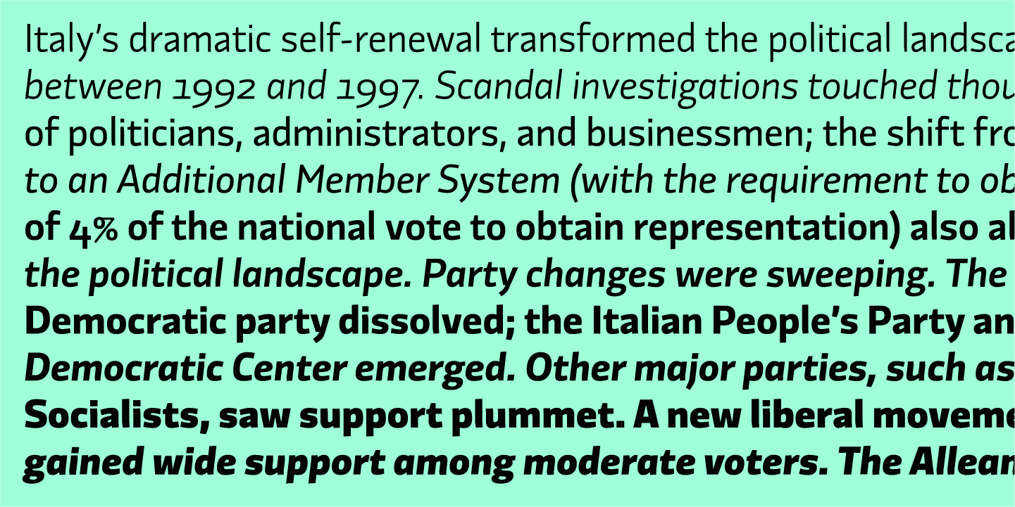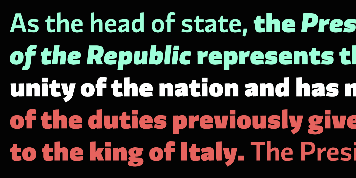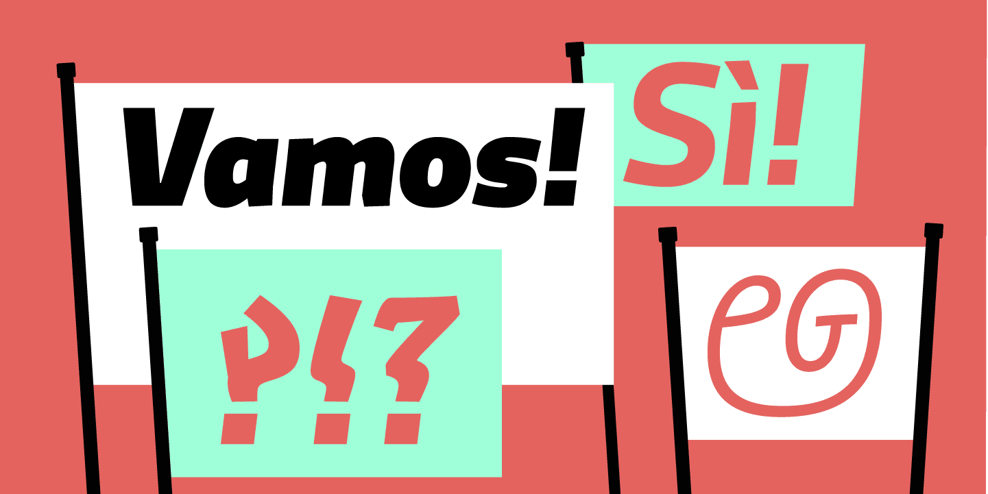 Originally designed in collaboration with the FF3300 design studio for the brand identity of the Partito Democratico Italiano, Divenire has a complete set of expressive punctuation (a wink at Hervé Bazin…). Another very unusual feature are the 28 different ampersands. With its 1264 glyphs and 7 styles with matching italics.
