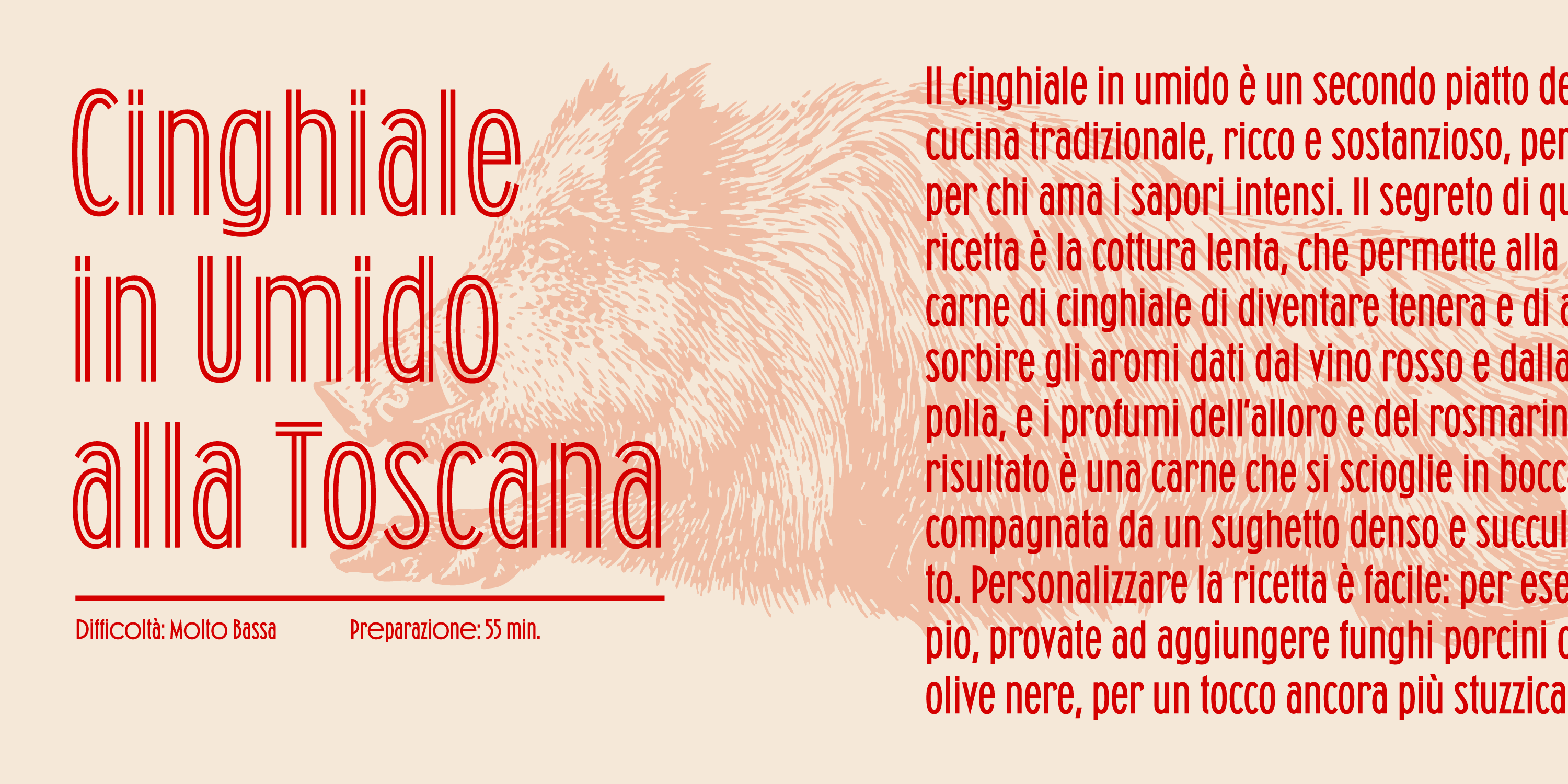 Macallè is a bold, compressed sanserif with a notably big x-height covering over 70% of the body. It features Art Déco elements, such as the low bars of A, E, F and H which also extend beyond the stems to the left. These particularities recall Guido Modiano’s best-selling Triennale typeface (Reggiani, 1928) – even though Triennale did not include a lowercase. Another interesting feature of Macallè is the inclusion of a wide, circular version of round letters C, G, O, as well as their matching lowercase versions.