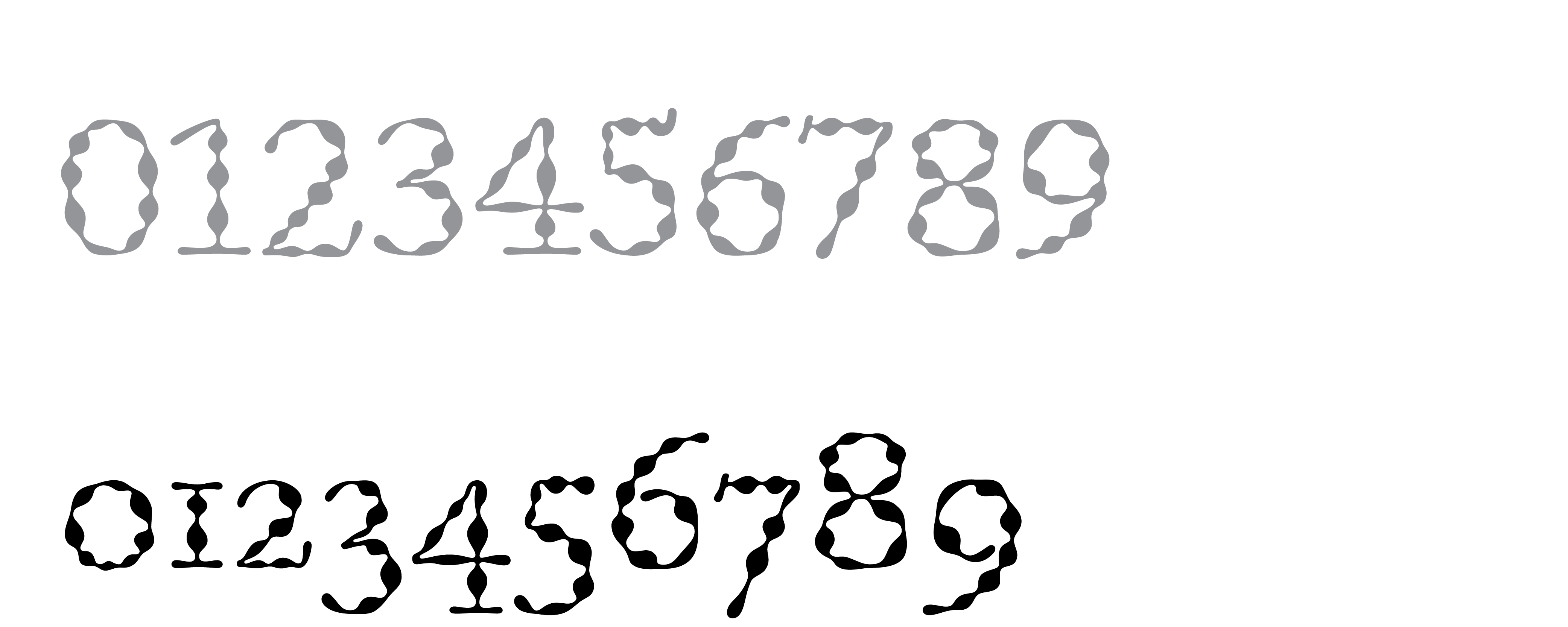 Magmo’s organic shapes are based on experiments with burning pieces of paper which show up as swollen parts, or globules, in the strokes of the letters and other glyphs – and they swell with the increase of weight. Consequently, the bolder weights have a much greater thick/thin contrast than the lighter ones. The terminals are carefully rounded globules, and the connections between the stems and the arches are soft and fluid.